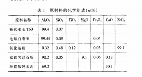 原材料主要原材料為板剛玉(6-Omm)、電熔白剛玉(3一Omm)、活性氧化鋁微粉、富鋁尖晶石粉、氧化鋯粉和純鋁酸鈣水泥等。