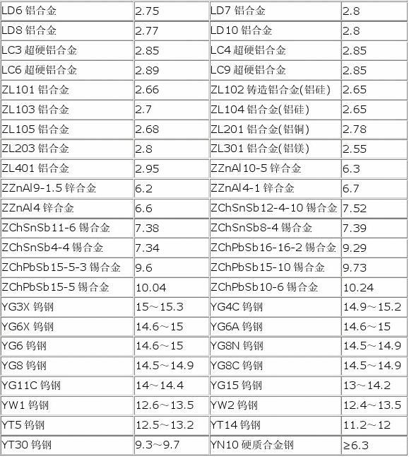 銅:1083 金:1064 銀:962 鋁:660 鋅:419.5 鉛:327 錫:232 硫代硫酸鈉:48 冰:0汞:-38.9 固態(tài)水銀:-39