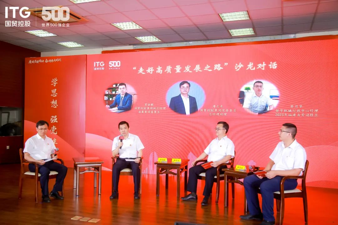 活動邀請國貿(mào)控股集團副總經(jīng)理、海翼集團董事長曾挺毅,國貿(mào)控股集團黨委委員、總經(jīng)理助理詹志東,銀華機械行政中心經(jīng)理、2023年福建省勞模蔡月華三位嘉賓聚焦國貿(mào)控股集團在高質(zhì)量發(fā)展之路上奮勇前行的積極成效開展“走好高質(zhì)量發(fā)展之路”沙龍對話。